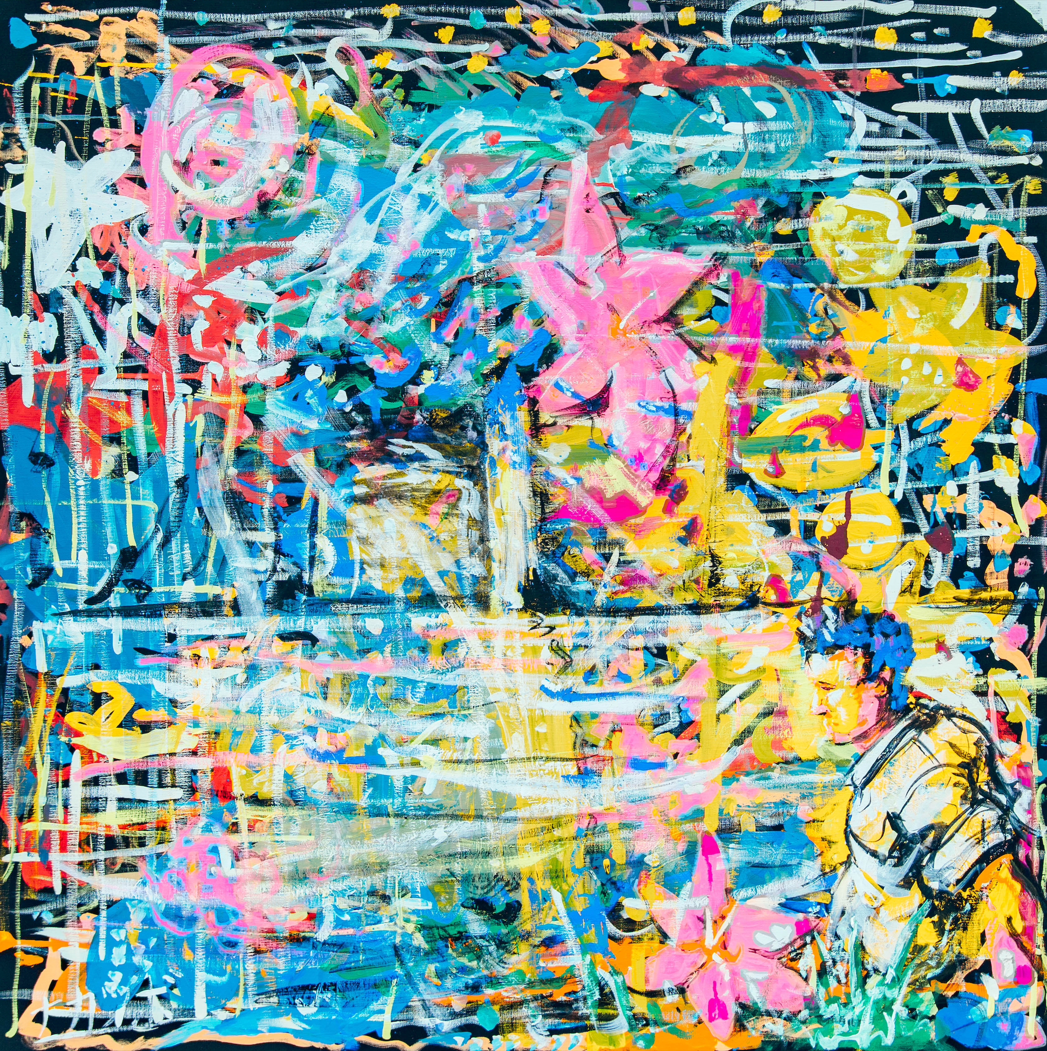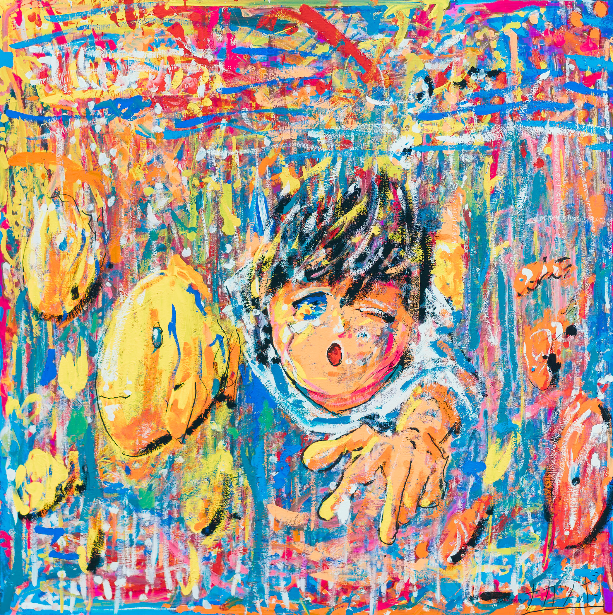 油彩では抽象的な画面で日常にある直感的で美しい情景を、デジタルでは可愛らしいアニメチックなタッチで人の生き様やあり方を見る。
