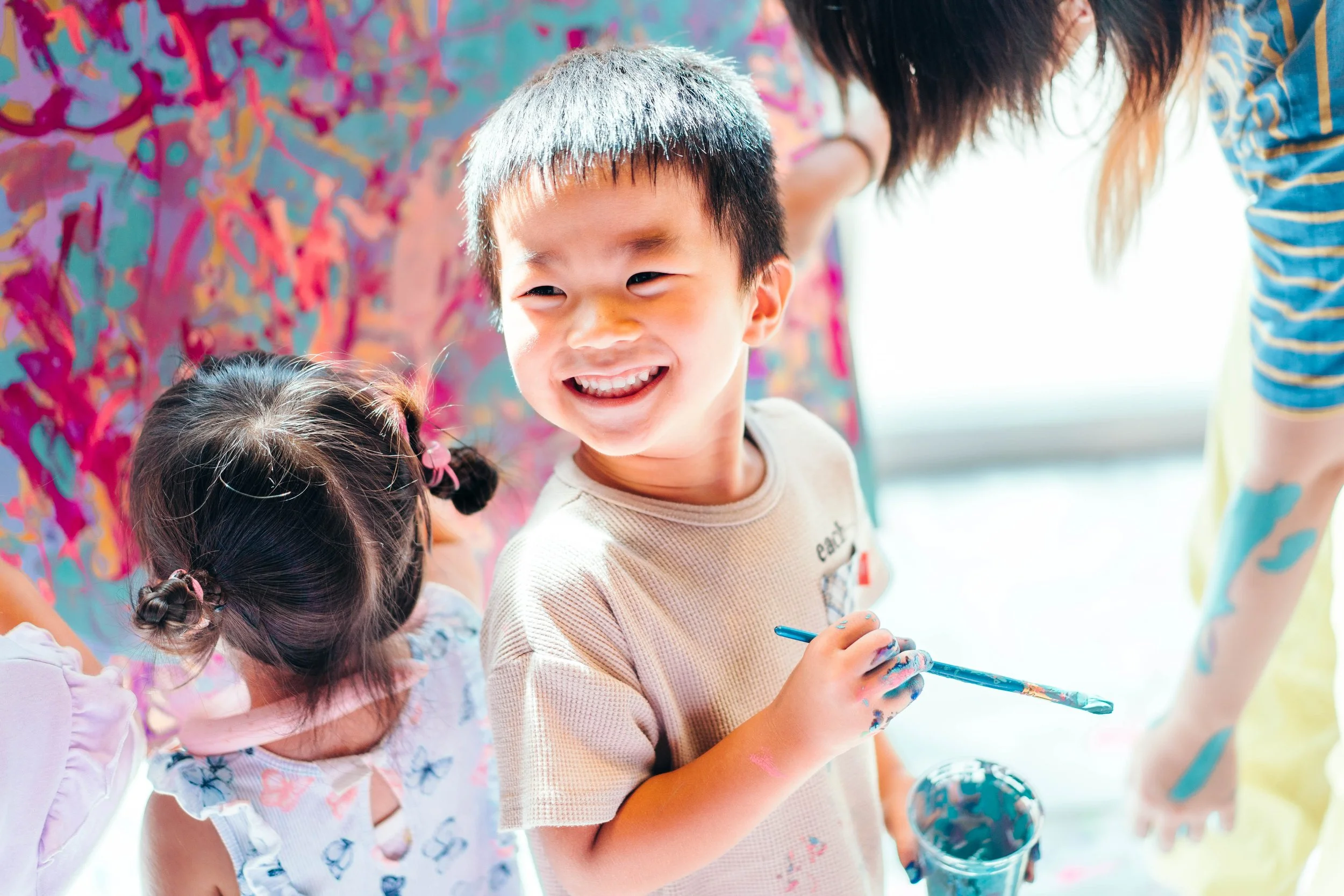 紙や絵の具、自然素材などを使って「つくる」ことを通じ、創造力や他者との関わりを育む。